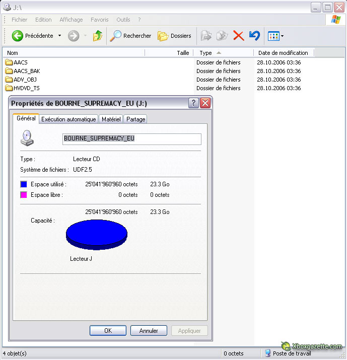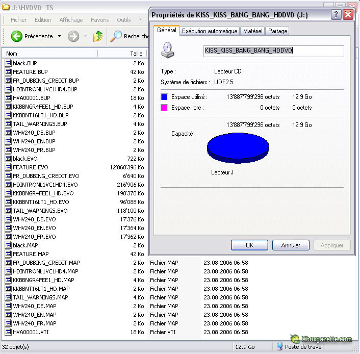 de lire avec succès sur PC avec le lecteur HD-DVD Xbox 360... un DVD. Les